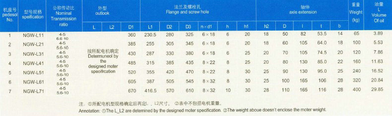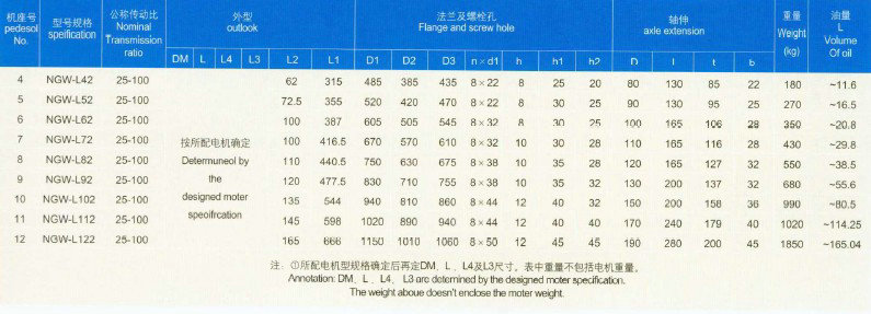 產(chǎn)品由NGW—L型單級(jí)L11-L71,兩級(jí)L42—L122兩種系列組成,適用于;臺(tái)金起重運(yùn)輸輕化及通用機(jī)械設(shè)備,適用條件如下: