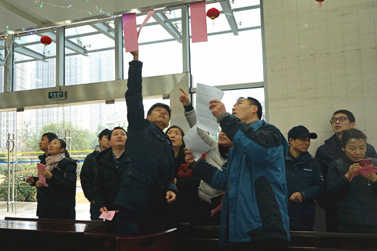 走進燈謎區(qū),幾百張謎面貼在彩燈架上,既有黨風廉政、時事政治、家風家訓,也有通俗易懂的日常成語等內容,豐富多彩,趣味盎然。前來猜謎的職工們互相提示和討論,有的駐足在各類燈謎前冥思苦想,有的穿梭在燈謎條幅中尋找合適的答案?;顒又?,大家搶競猜、拼智力、賽智慧,場面熱烈,老少盡歡,現場時時發(fā)出喜悅的驚呼聲,共同感受傳統(tǒng)文化帶來的無窮魅力。